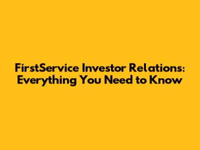 FirstService Investor Relations: Everything You Need To Know
