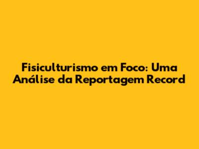 Fisiculturismo Em Foco: Uma Análise Da Reportagem Record