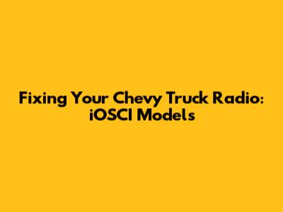 Fixing Your Chevy Truck Radio: IOSCI Models