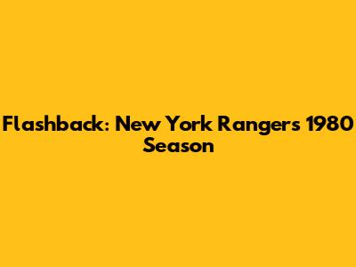 Flashback: New York Rangers 1980 Season