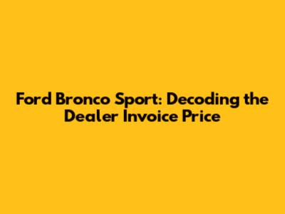 Ford Bronco Sport: Decoding The Dealer Invoice Price