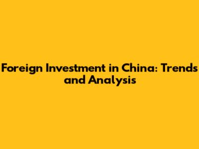 Foreign Investment In China: Trends And Analysis
