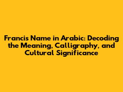 Francis In Arabic: Meaning, Calligraphy & Cultural Impact