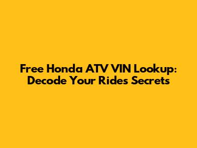 Free Honda ATV VIN Lookup: Decode Your Ride's Secrets