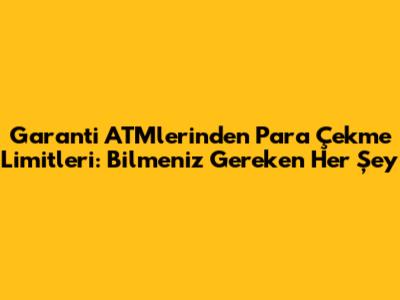 Garanti ATM'den Ne Kadar Para Çekilir? Güncel Limitler