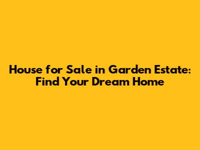 Finding a house for sale in Garden Estate is an exciting journey. With its prime location, family-friendly environment, and beautiful homes, Garden Estate offers a lifestyle that's hard to beat. By understanding the real estate market, working with a local agent, and following these tips, you can find your dream home and make Garden Estate your own. So, go ahead and start your search – your perfect home is waiting for you in Garden Estate!