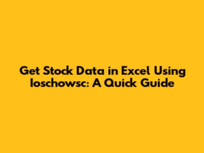 Get Stock Data In Excel Using Ioschowsc: A Quick Guide
