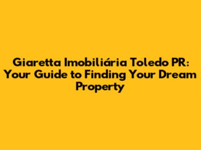 Giaretta Imobiliária Toledo PR: Your Guide