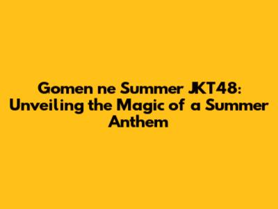 Gomen Ne Summer JKT48: A Deep Dive Into The Hit Song