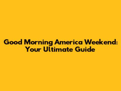 Good Morning America Weekend: Your Complete Guide
