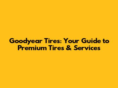 Goodyear Tires: Your Guide To Premium Tires & Services