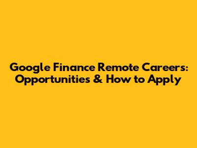 Google Finance Remote Careers: Opportunities & How To Apply