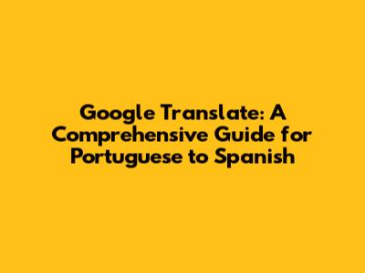 Google Translate: Portuguese To Spanish Conversion Guide