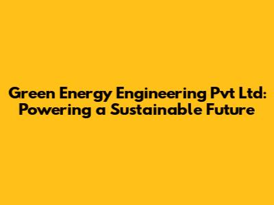 Green Energy Engineering Pvt Ltd: Powering A Sustainable Future