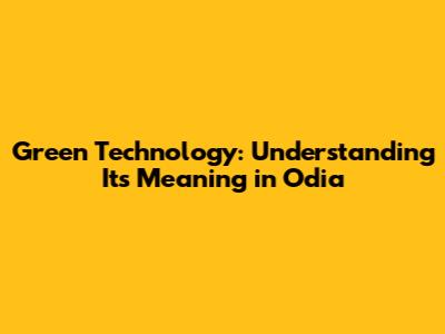 Green Technology Explained: A Deep Dive Into Odia Context
