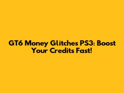 GT6 Money Glitches PS3: Boost Your Credits Fast!