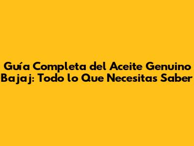 Guía Completa Del Aceite Genuino Bajaj: Todo Lo Que Necesitas Saber