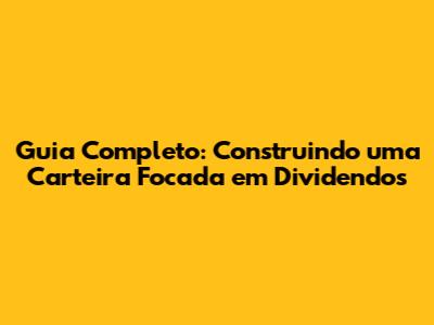 Guia Completo: Construindo Uma Carteira Focada Em Dividendos