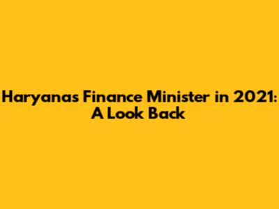 Haryana's Finance Minister In 2021: Who Held The Post?