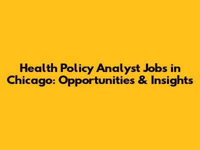 Are you passionate about health policy and looking for health policy analyst jobs chicago? The Windy City offers a vibrant landscape for health policy analysts, with numerous opportunities to contribute to impactful initiatives. This article dives into the specifics of health policy analyst roles in Chicago, covering everything from job responsibilities and required skills to top employers and salary expectations. Whether you're a seasoned professional or a recent graduate, understanding the nuances of this field in Chicago is crucial for career success.