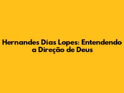 Hernandes Dias Lopes: Entendendo A Direção De Deus