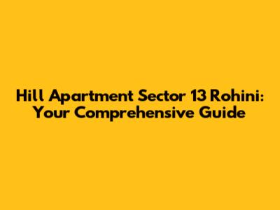 Hill Apartment Sector 13 Rohini: Your Comprehensive Guide