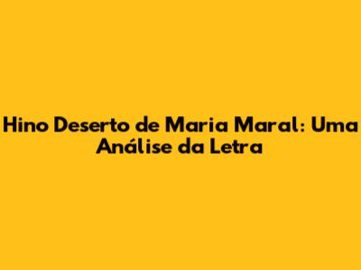 Hino Deserto De Maria Maral: Uma Análise Da Letra