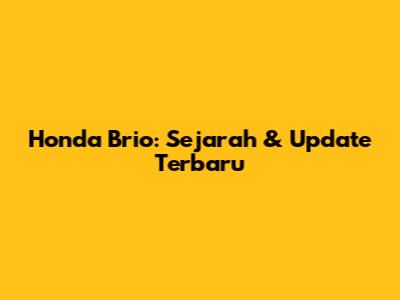 Honda Brio: Sejarah & Update Terbaru
