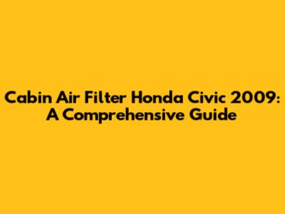 Honda Civic 2009: Cabin Air Filter Replacement Guide