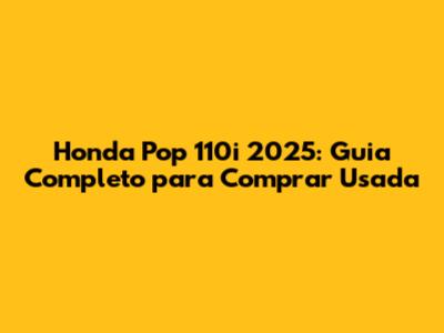 Honda Pop 110i 2025: Guia Completo Para Comprar Usada