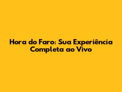 Por Que Assistir à Hora do Faro é Imperdível?