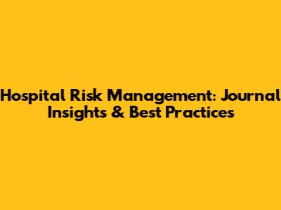 Hospital Risk Management: Journal Insights & Best Practices