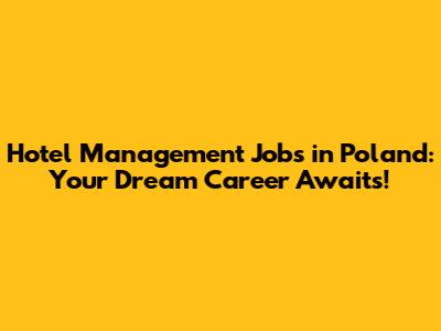Hotel Management Jobs In Poland: Your Dream Career Awaits!