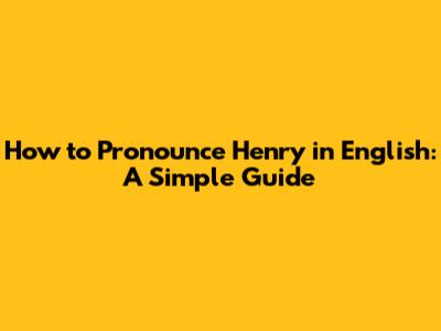How To Pronounce Henry In English: A Simple Guide