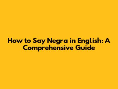 How To Say Negra In English: A Comprehensive Guide