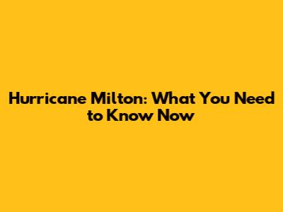 Hurricane Milton: What You Need To Know Now