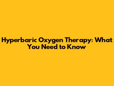 Hyperbaric Oxygen Therapy: What You Need To Know