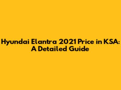 Hyundai Elantra 2021 Price In KSA: A Detailed Guide