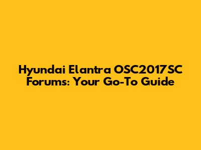 Hyundai Elantra OSC2017SC Forums: Your Go-To Guide