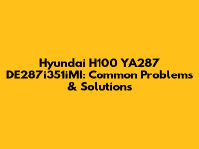 Hyundai H100 YA287 DE287i351iMI: Common Problems & Solutions