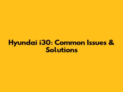 Hyundai I30: Common Issues & Solutions