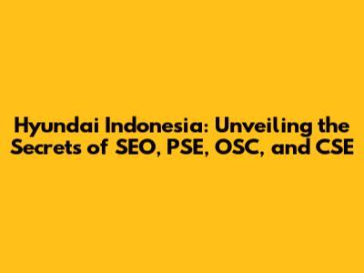 Hyundai Indonesia: SEO, PSE, OSC, CSE - The Complete Guide