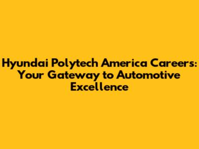Hey there, future automotive aficionados! Are you looking for a career that's both challenging and rewarding? Do you have a passion for innovation, technology, and the automotive industry? Then Hyundai Polytech America might just be the place for you! This article is designed to be your go-to guide for everything related to Hyundai Polytech America careers. We will dive into what makes this company a great place to work, the types of job opportunities they offer, and how you can get your foot in the door. So, buckle up, because we're about to take a deep dive into the exciting world of Hyundai Polytech America!