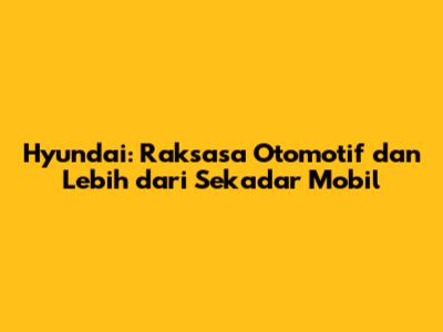 Hyundai: Raksasa Otomotif Dan Lebih Dari Sekadar Mobil