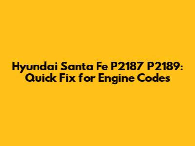 Hyundai Santa Fe P2187 P2189: Quick Fix For Engine Codes