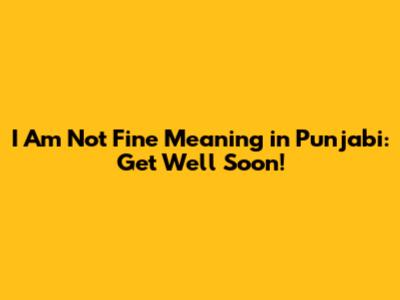 I Am Not Fine Meaning In Punjabi: Get Well Soon!