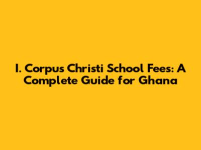 I. Corpus Christi School Fees: A Complete Guide For Ghana