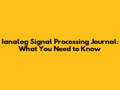 Ianalog Signal Processing Journal: What You Need To Know