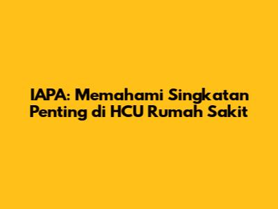 IAPA: Singkatan Penting Di HCU Rumah Sakit