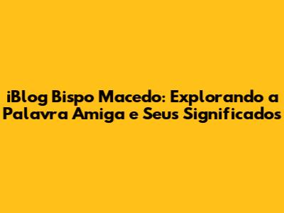 iBlog Bispo Macedo: Uma Jornada de Reflexão e Fé – Fala, galera! Se você chegou até aqui, provavelmente já ouviu falar do iBlog do Bispo Macedo, né? É um espaço online onde a palavra e a fé se encontram, proporcionando reflexões e mensagens inspiradoras para milhares de pessoas. A "Palavra Amiga" é um dos pilares desse blog, e hoje vamos mergulhar fundo para entender o que ela significa e como pode impactar a sua vida. Preparados para essa jornada?